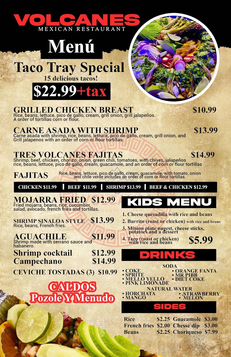 The menu at Los Volcanes Mexican Restaurant offers a straightforward, approachable selection centered on traditional Mexican flavors. It’s the kind of place where simple, well-prepared dishes take center stage, making it easy to enjoy a casual meal or share bites with friends and family.